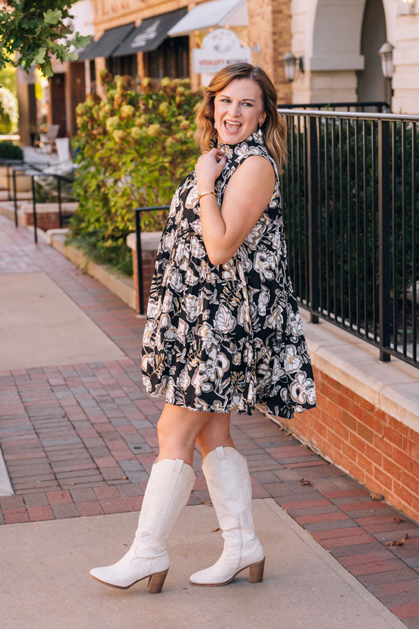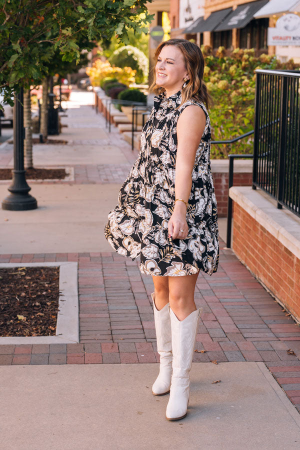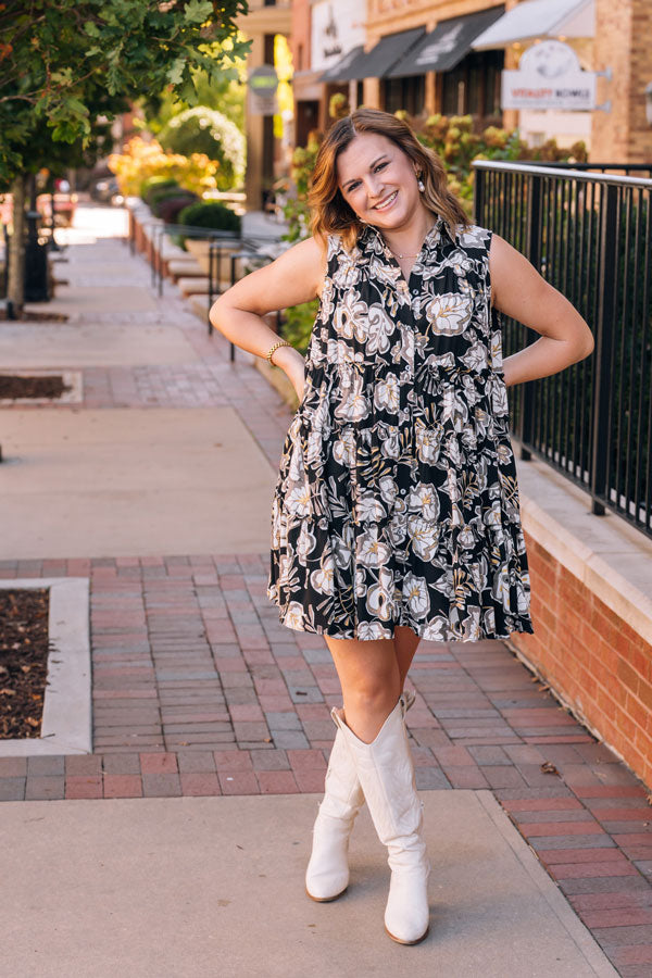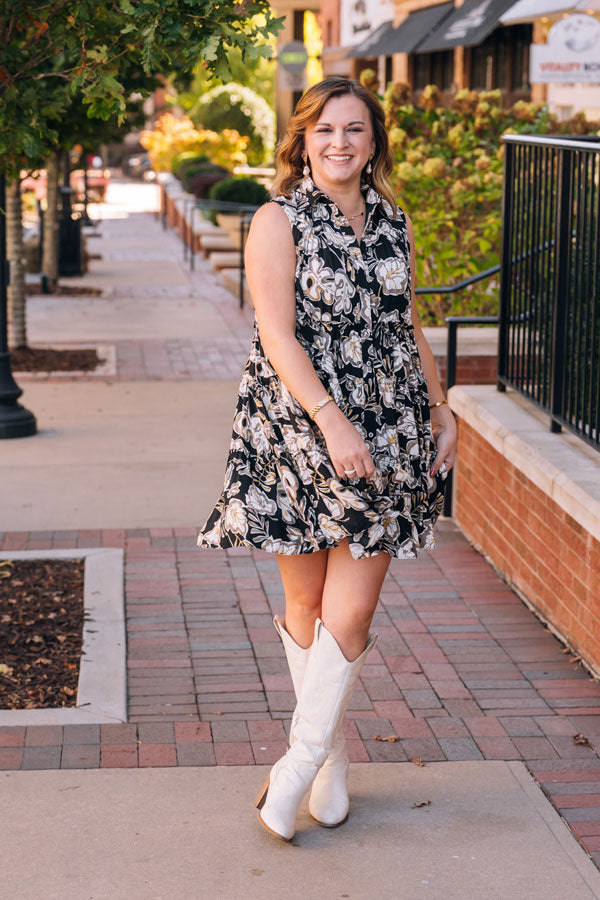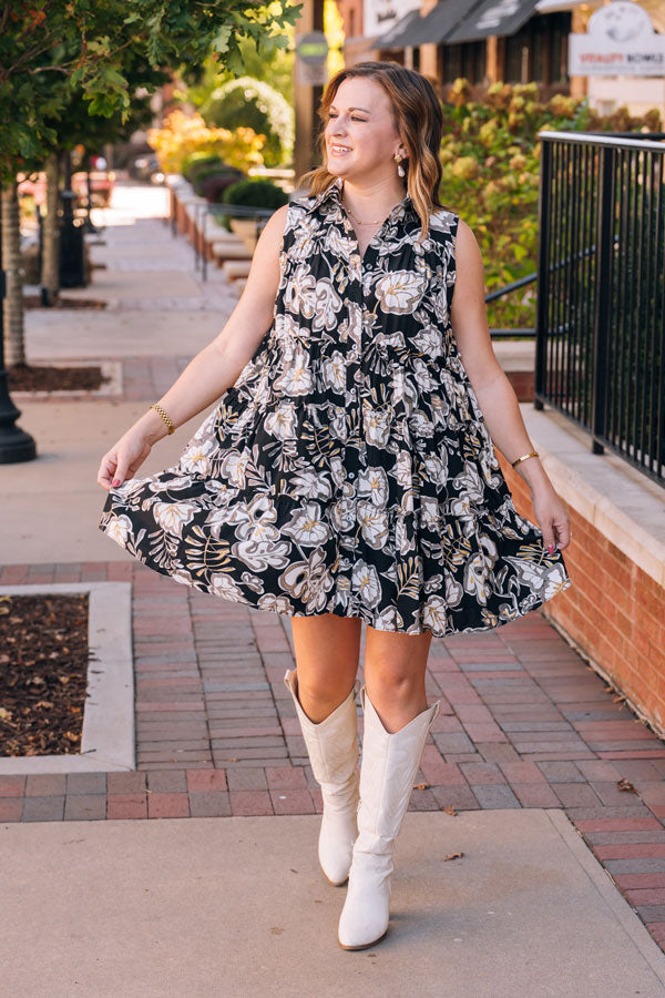 Ease into the season with the Leaves Falling Dress. This charming dress features a button-front, collar, and cute A-line fit that adds twirl-worthy movement. Fully lined for all-day comfort, its rich fall colors make it the perfect pick as you shift into sweater weather. Wear with a denim jacket or a cute cardigan on cooler days!