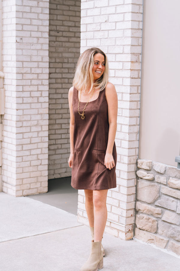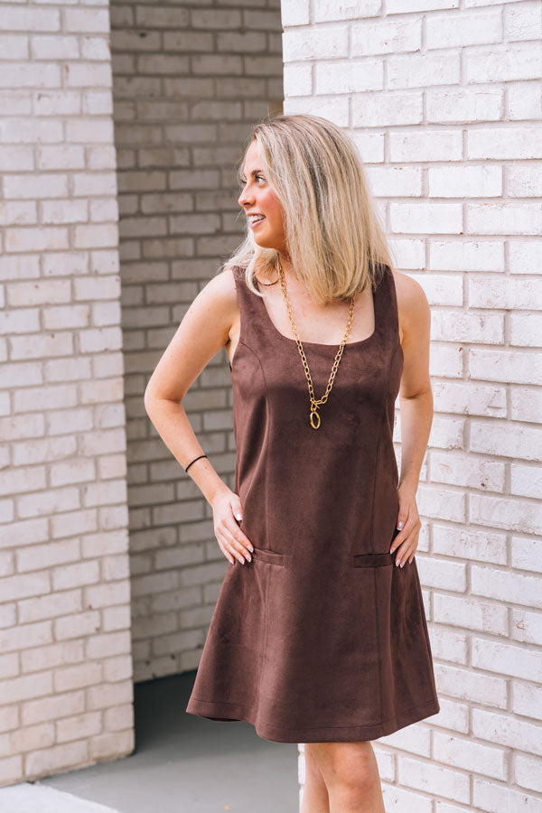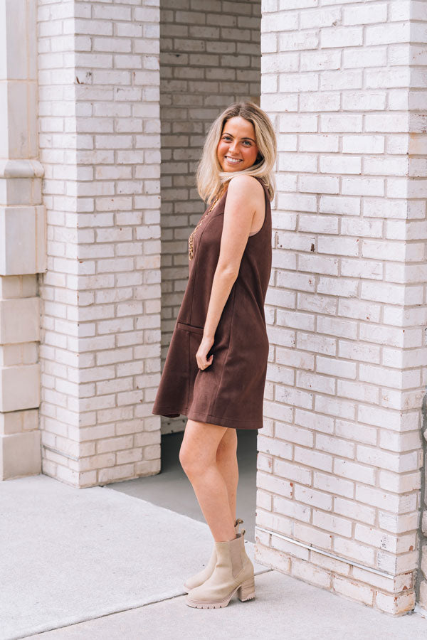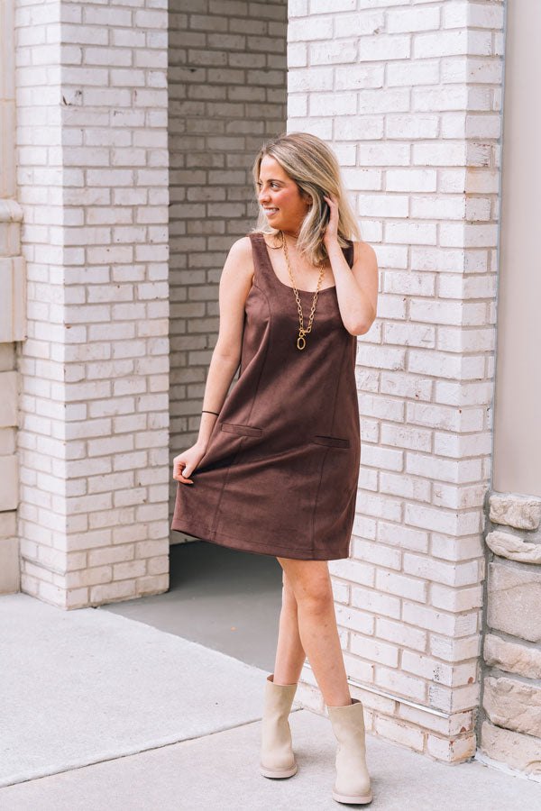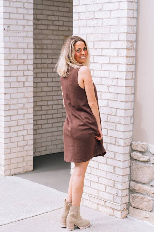 Meet your new go-to dress! The Never Better Faux Suede Dress combines style with serious practicality. Wear it as a sleeveless dress or layered over a top. A convenient side zipper makes getting dressed a breeze. Crafted from sumptuous chocolate brown faux suede, this versatile number transitions seamlessly from day to night—dress it down with sneakers or elevate it with heels. It's the kind of piece that works as hard as you do, looking fabulous every step of the way.