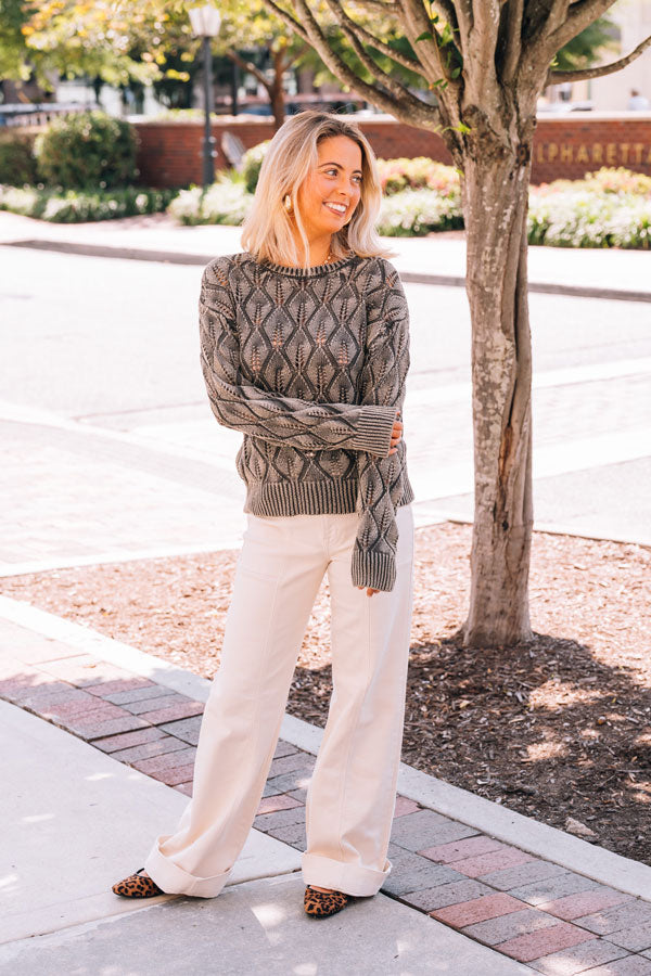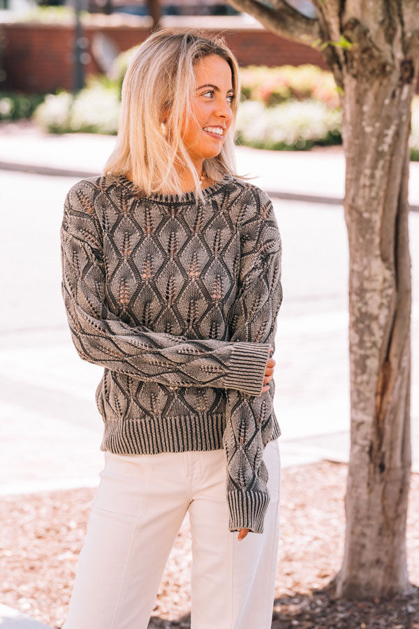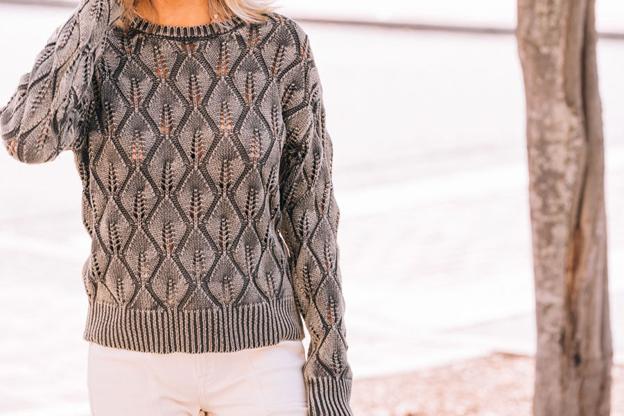The Leaves Falling Sweater brings fun to your wardrobe with its distressed wash and eye-catching abstract weave. Finished with ribbed cuffs and hem, it offers a comfy fit that’s perfect for any occasion. Whether dressed up or down, this versatile sweater adds a cozy, stylish twist to your everyday outfits.