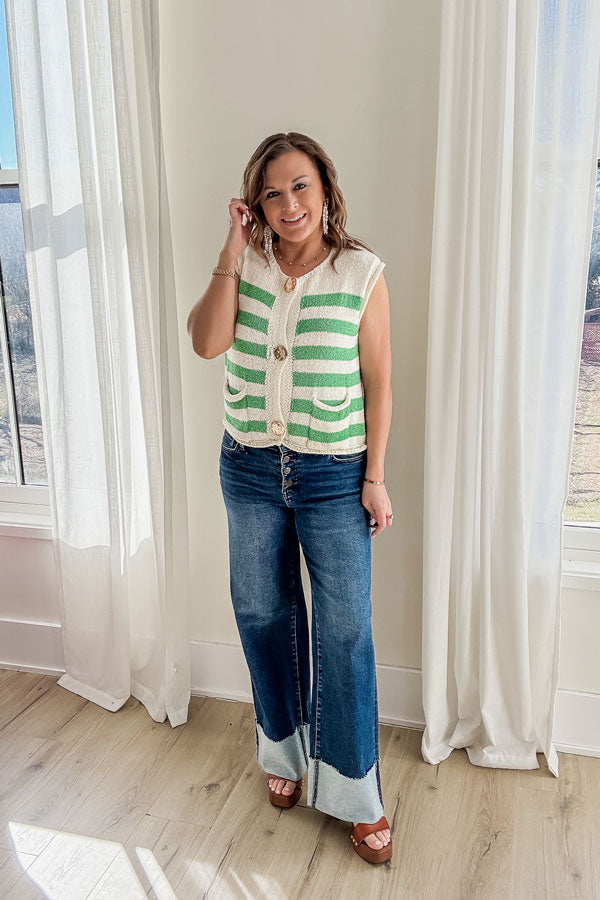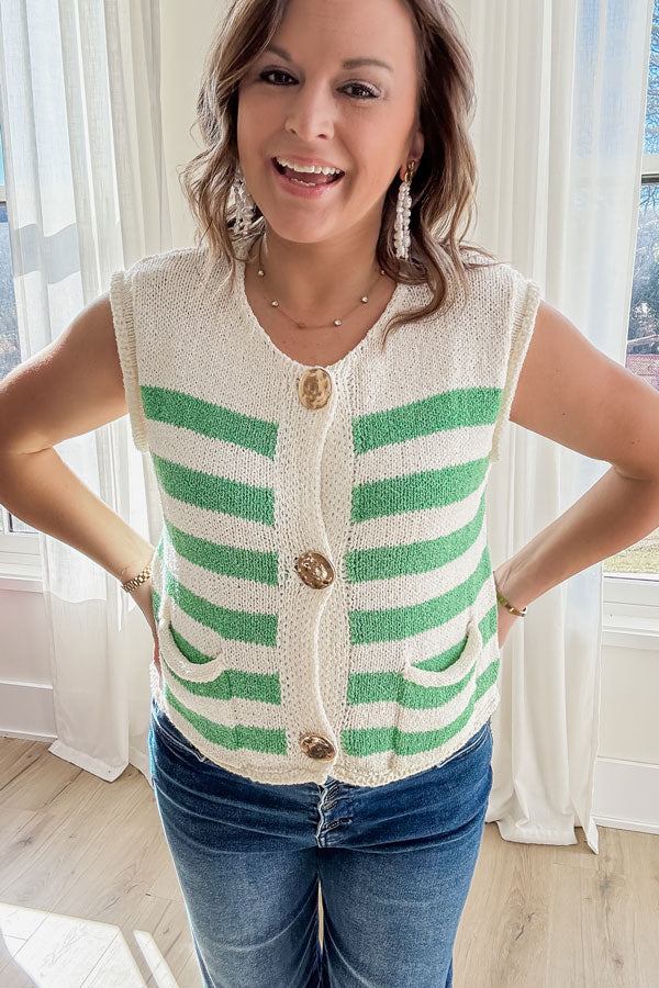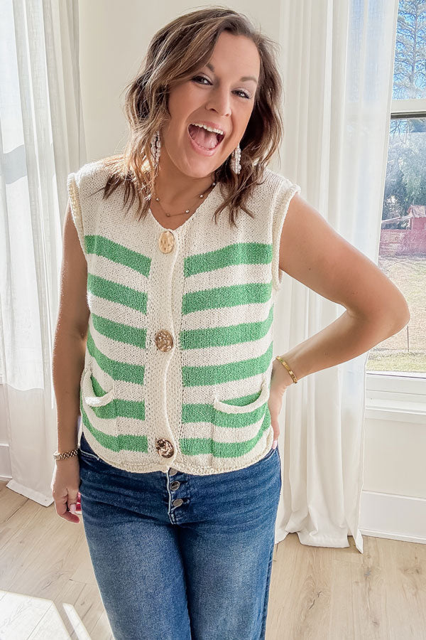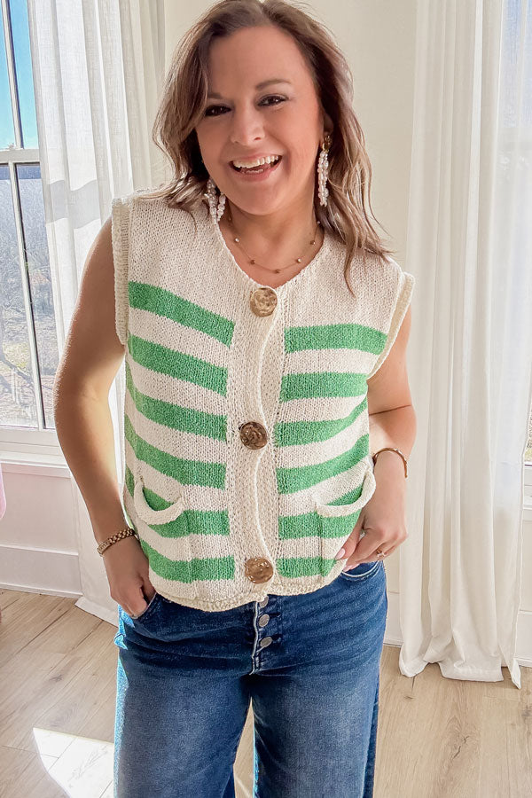 Stripes never go out of style—and this Fresh Start Stripe Sweater Vest proves it. Layer it over anything and instantly elevate your look with minimal effort. Those statement-making oversized buttons keep things interesting. Whether you're pairing it with basics or building a more polished outfit, this piece does the heavy lifting for your wardrobe refresh.