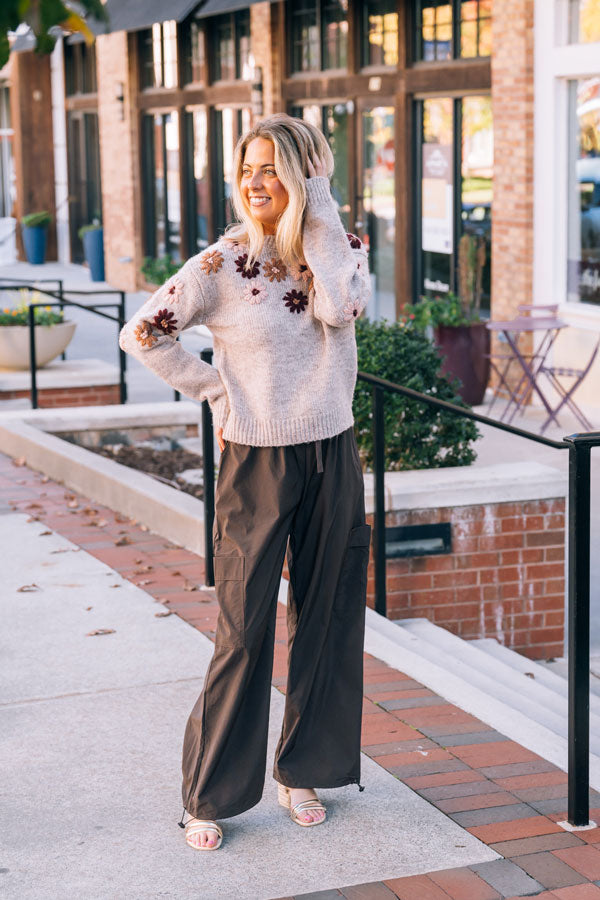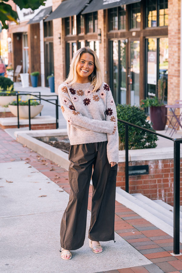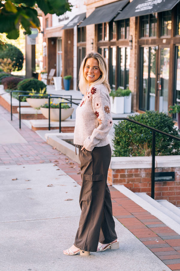 Cozy up in our Fall Meadow Sweater, where autumn blooms come to life through delicate embroidered flowers dancing across soft fabric. The relaxed drop shoulder silhouette offers effortless comfort, while ribbed cuffs and hem keep everything perfectly in place. With a classic crew neck and soft construction, this sweater is your new go-to for crisp-weather style that feels as good as it looks.