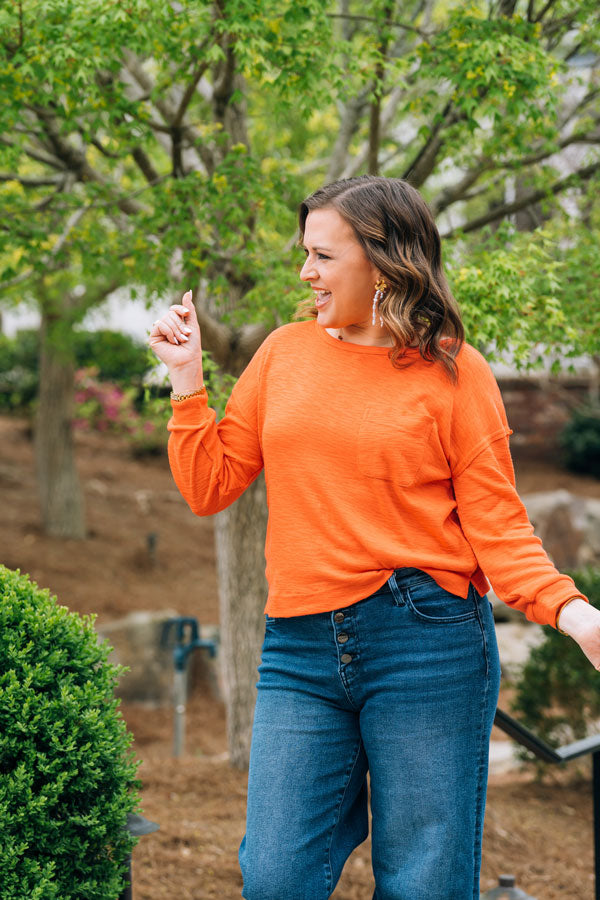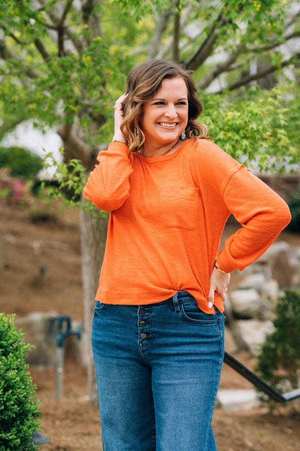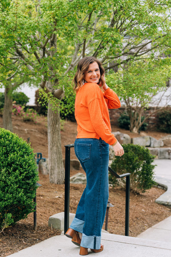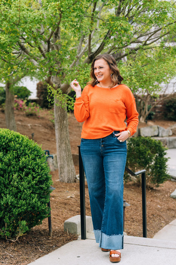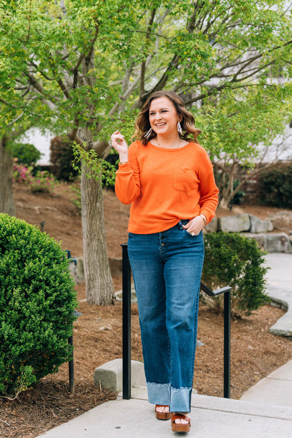 The Own the Day Sweater brings effortless style to your everyday rotation. Crafted in a soft, breathable knit, this piece transitions seamlessly from spring to summer with its bright, cheerful orange hue. The subtle side slit creates an easy, relaxed silhouette that flatters and moves with you. Layer it or wear it solo, this sweater adapts to your day. Wear with shorts on cool mornings and evenings at the beach this season!