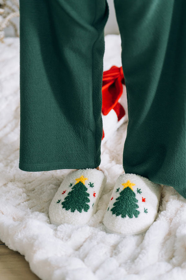 Gather around the Christmas tree this holiday season in these adorable MIA Christmas Tree Cozi Slippers! Made with super soft, comfortable material, and solid base.