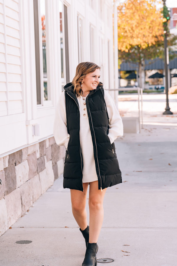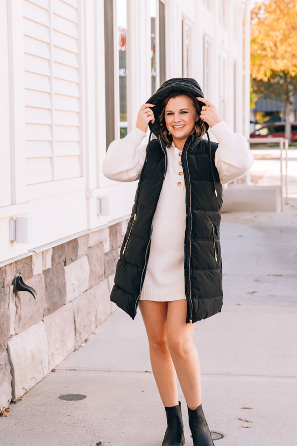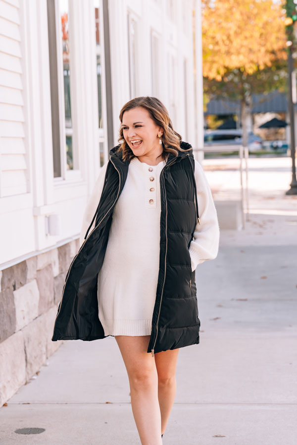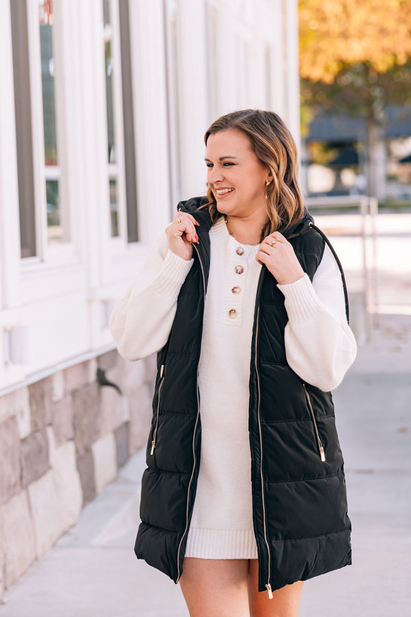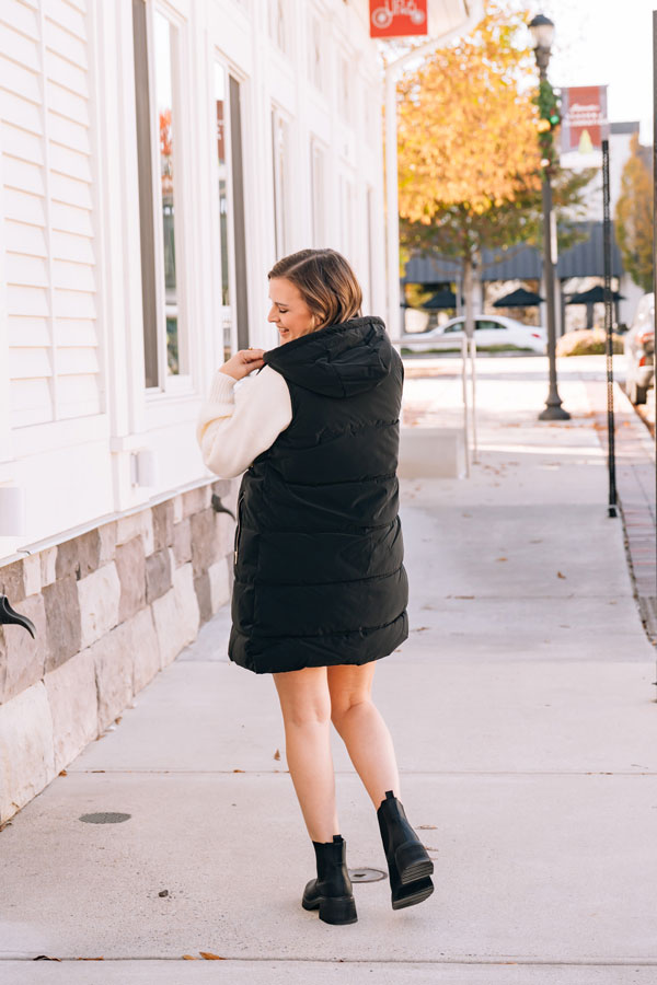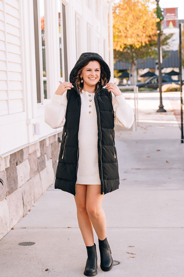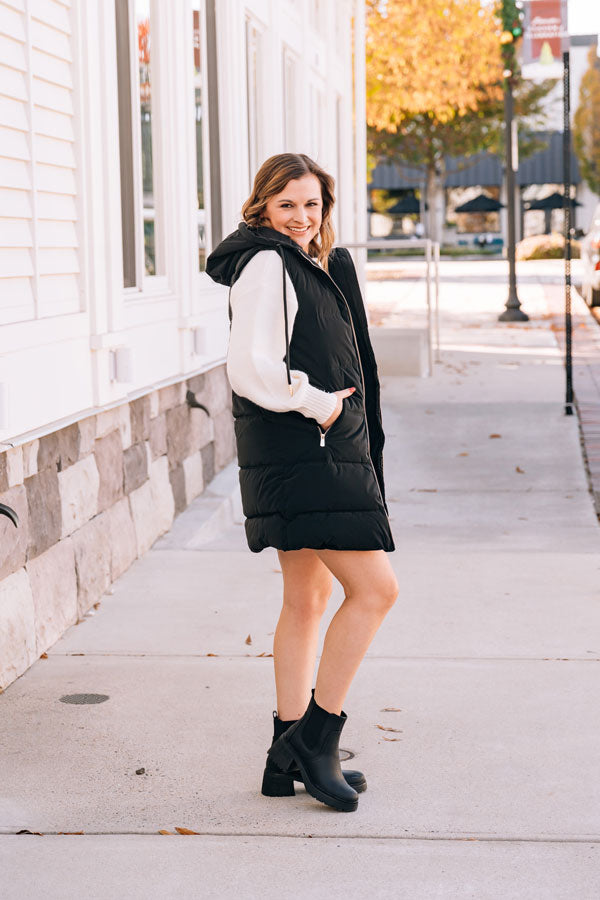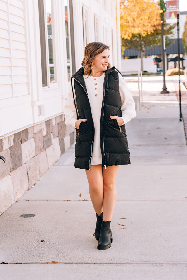 The Fell For You Long Vest delivers sophisticated layering with an understated edge. Engineered with premium puffy insulation, this piece features a hood to keep you warm. Has bold metallic zippers and fleece-lined pockets. The extended length and refined silhouette make it an essential transitional layer that elevates any ensemble with quiet confidence and modern sensibility.