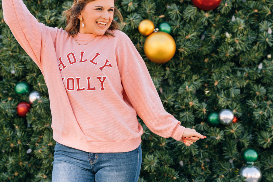 Get ready to spread holiday magic in the Holly Jolly Sweatshirt—your new go-to for festive comfort. This laid-back layer boasts a dropped shoulder cut and airy lightweight construction. Snug ribbed cuffs and hem lock in warmth while keeping things playfully put-together. Perfect for holiday parties, family gatherings, or those blissful moments when all you want is pure coziness.