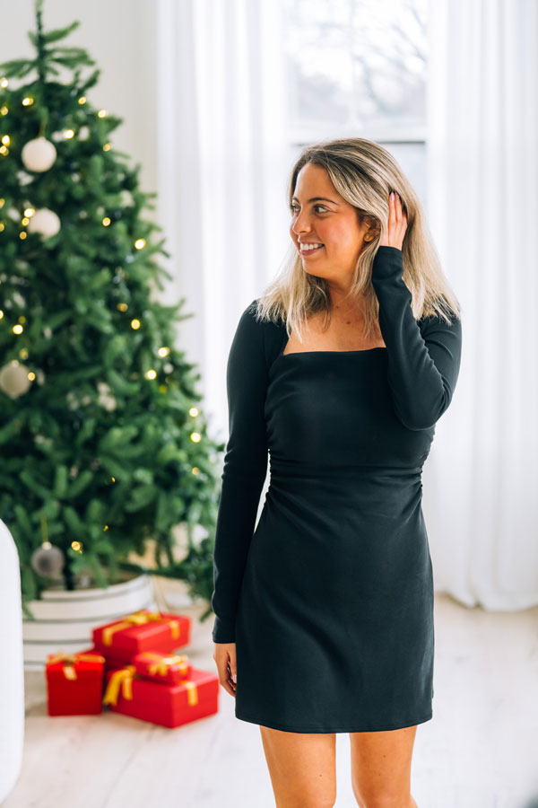 Go from holiday party to New Year's Eve in the effortlessly elegant Hustle Ruched Mini Dress. The strategic side ruching adds dimension and movement while maintaining that coveted little black dress simplicity. It's the kind of piece that works as hard as you do—dress it up with statement jewelry or keep it understated for maximum versatility. Sophisticated, flattering, and ready for your best season yet. The simplicity of this LBD makes it a great staple that can worn all year!Z