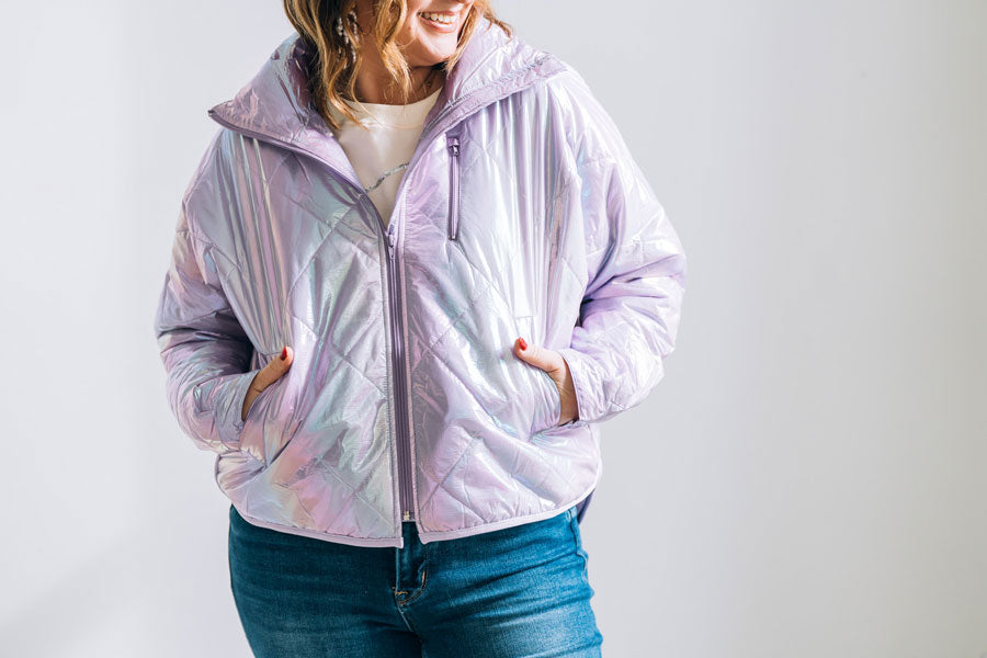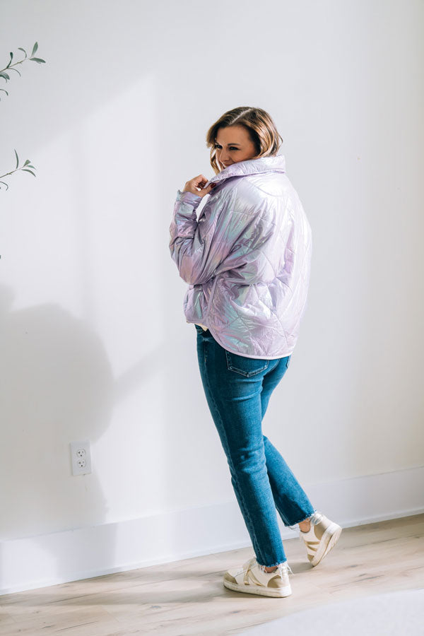 The Love Ya Quilted Jacket is all about effortless style with a wink and a smile. Impossibly light and packed with personality, this jacket features a gorgeous shimmer that dances in the light. The quilted design delivers warmth without bulk. Toss it on over anything and instantly elevate your look with a touch of sparkle and sass.