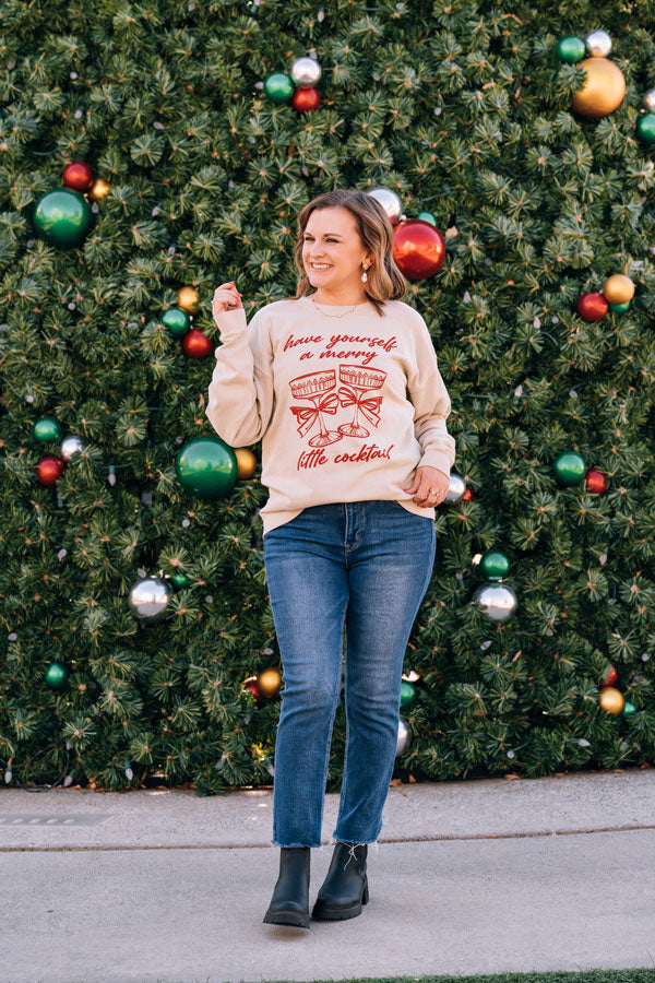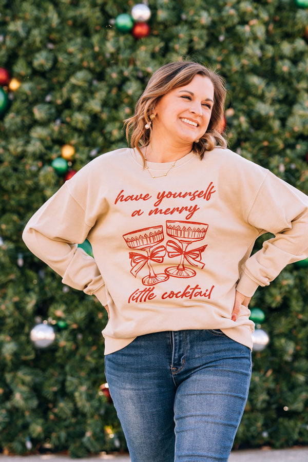 Turn heads this holiday season in our Merry Little Cocktail Sweatshirt—an oversized comfort essential with a fun graphic that's full of holiday cheer. Soft, relaxed, and unapologetically fun, it's the kind of piece that makes you smile every time you pull it on. Perfect for holiday parties, cozy nights in, or anywhere you want to spread a little festive sass without sacrificing comfort.