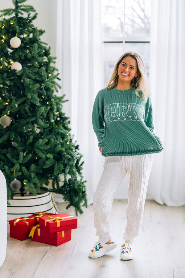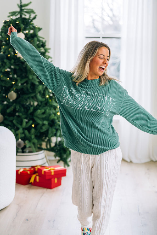 Wrap yourself in cozy vibes with our Merry Ribbed Sweatshirt—the perfect excuse to stay comfy all season long. Featuring soft ribbing and a lightweight construction that won't weigh you down, this relaxed-fit essential keeps comfort at the top of your wish list. Whether you're lounging at home or running errands, it's the laid-back layer that makes everything feel a little merrier.