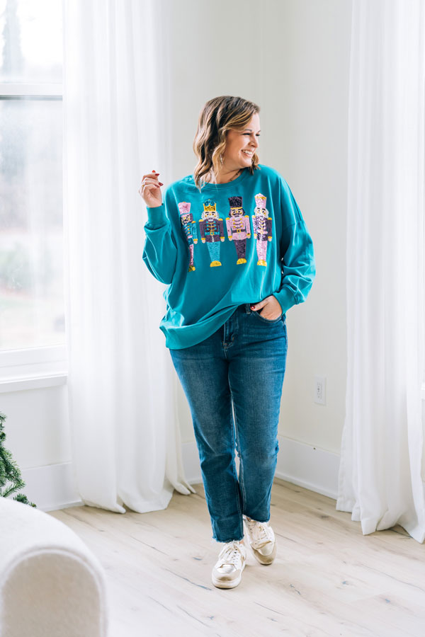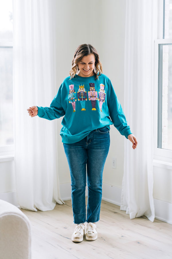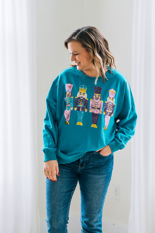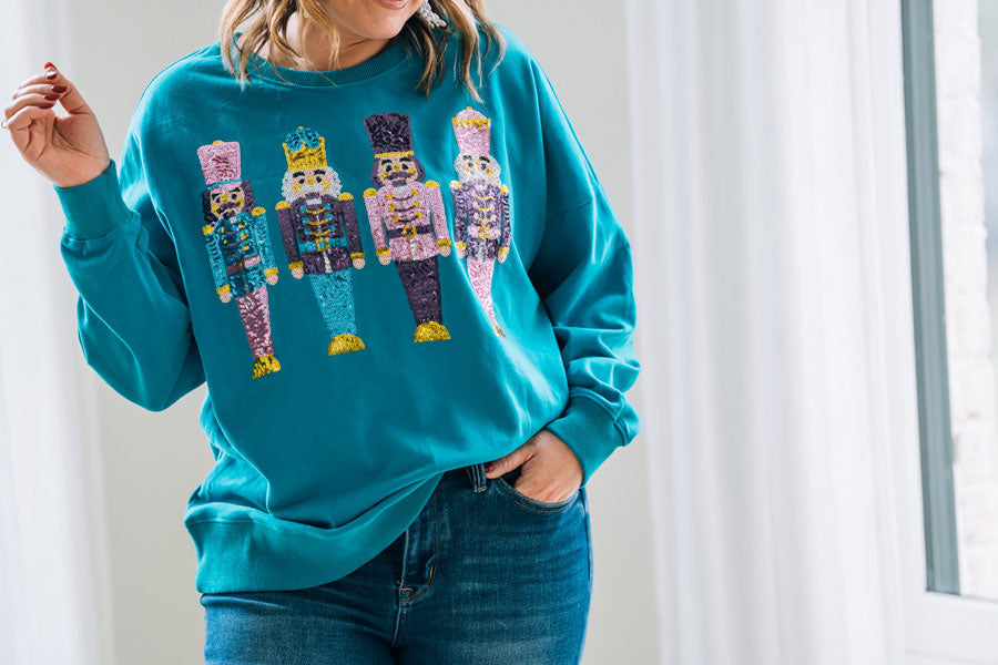 Crack into the holiday spirit with The Nutcracker Oversized Sweatshirt, where festive sequined details meet cozy comfort. Perfect for lounging through December or making a bold statement at your holiday gatherings, this playful piece combines whimsical charm with the relaxed fit you crave.