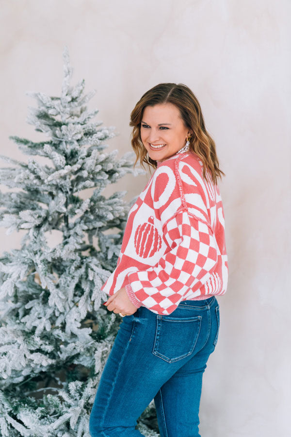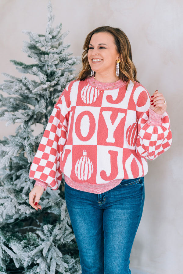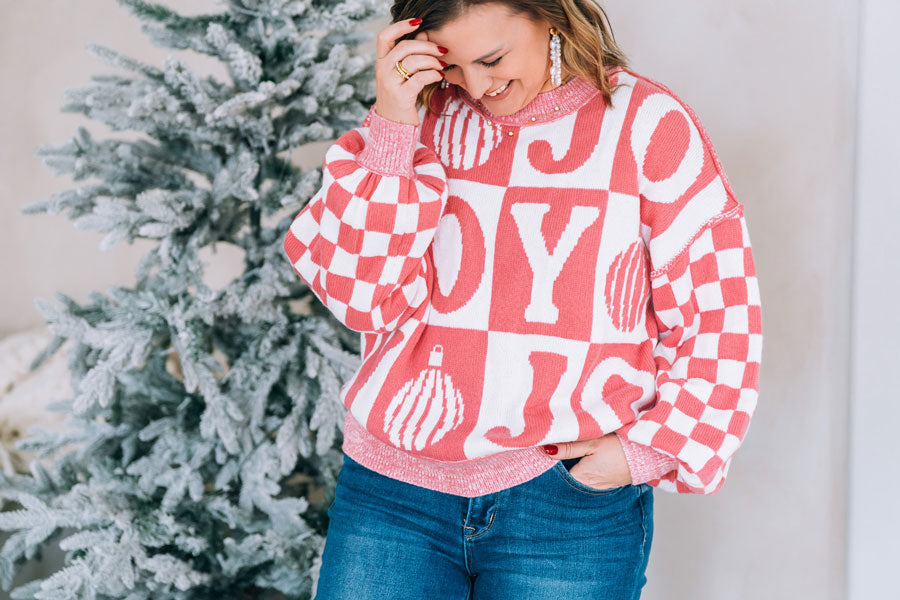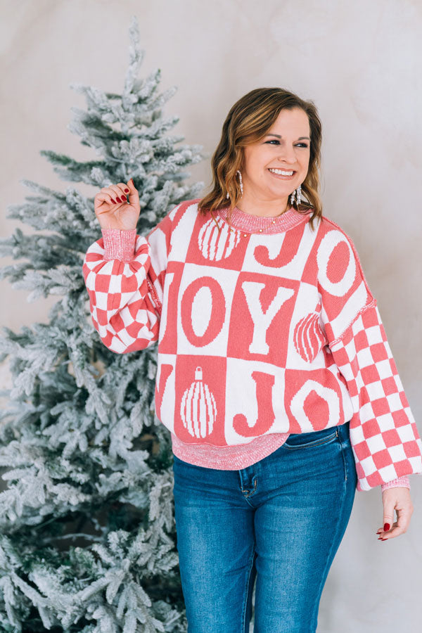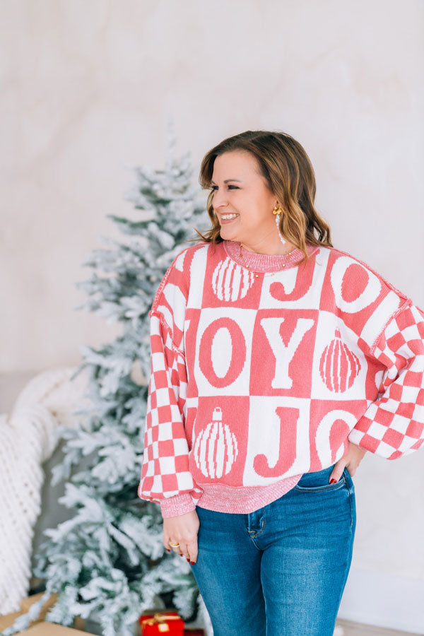 Spread holiday cheer in this delightfully oversized Pink Joy Sweater. Featuring a ribbed neckline and wrists for a refined finish, the generous silhouette offers maximum comfort for festive season lounging and celebrations. The structured ribbed hem keeps everything in place while you embrace the cozy, carefree vibes this sweater brings to your winter rotation.